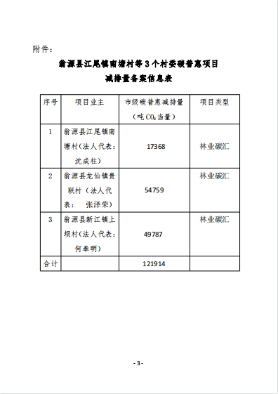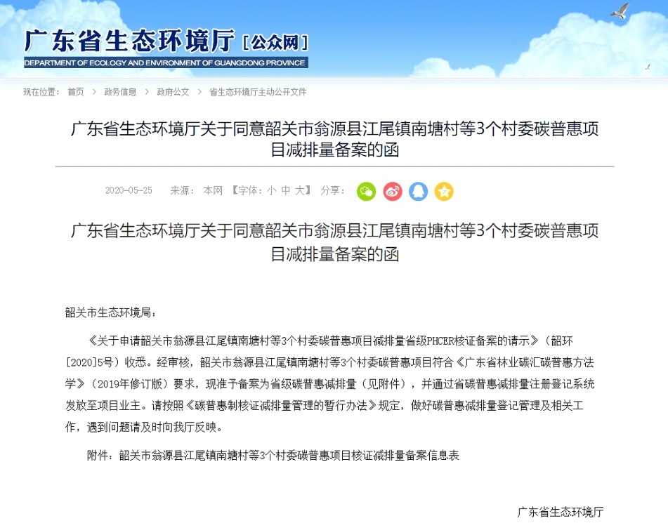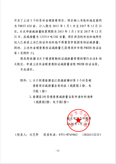 韶关市翁源县江尾镇南塘村委会林业碳普惠项目
